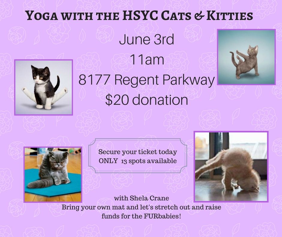 Come enjoy a Yoga Session by Sheila Crane as our Cats and Kitties help you stretch and hold!